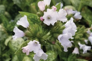 A well-named Pulmonaria brought over from England, ‘Opal’ has flowers that could be mist..