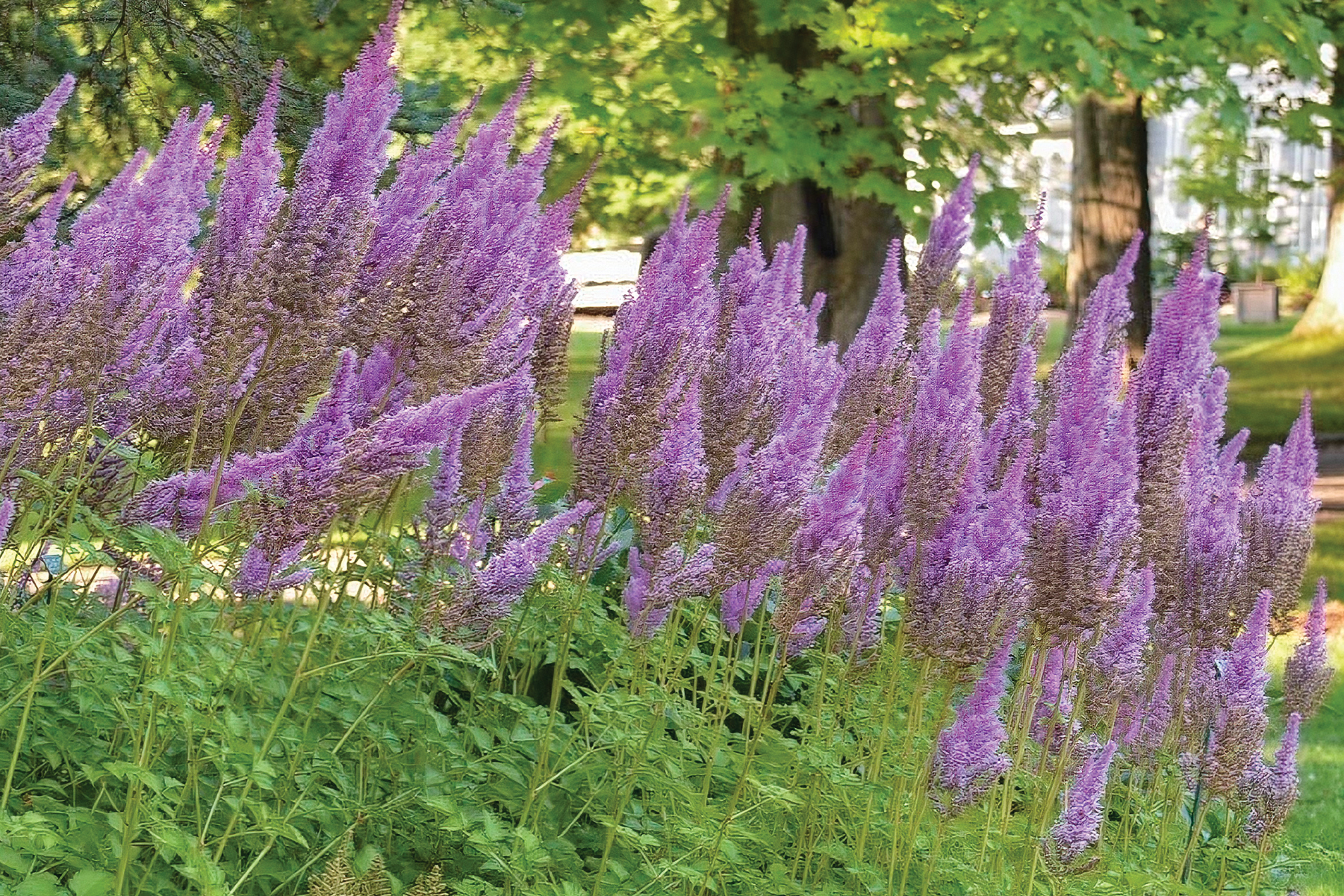 Deep purple-red plumes are narrow and very upright. Their bold, full form glows against the distinctive bronze and green foliage. This is one of the best tall, late Astilbes. ‘Purple Candles’ lights up very late in the season.